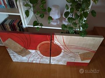 QUADRO MODERNO su tela con particolari in rilievo composto da due quadri dimensioni ciascuno cm 70 x 70