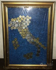 Bellissimo quadro dell'Italia realizzato con varie monete in lire.