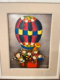 Vendo questo quadro olio su tela, intitolata "La Mongolfiera", realizzata dal pittore R. Carpegini;
