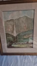 Quadro incorniciato con una scena paesaggistica. 43x53 acquarello su cartoncino Con cornice in legno Buone condizioni