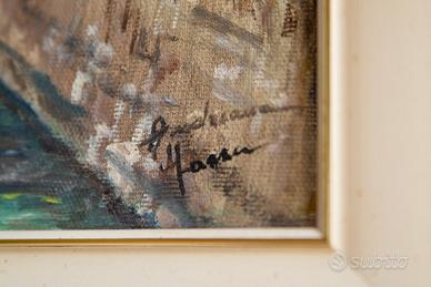 Quadro n. 4 Paesaggio Vittorio Veneto Serravalle fiume Meschio Autrice: Andreana Mazzer Anno: 1993 Olio su tela Misure:35x45 cm, con cornice legno 63x73 cm
