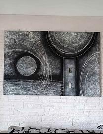 Quadro Astratto con colori grigio, nero e bianco, pittura a rilievo