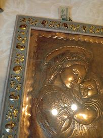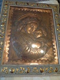 quadro in rame raffigurato madonna con bambino unica cosa che è lesionato il vetro ma tutto bene il resto