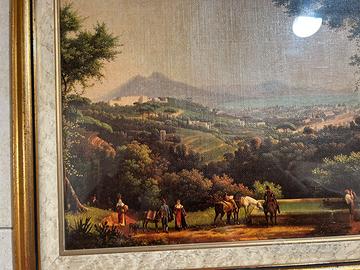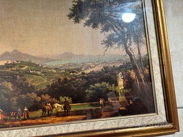 Per amanti dell'arte classica e delle vedute storiche: vendo splendida riproduzione del dipinto "Napoli da Capodimonte", opera del celebre pittore francese Alexandre-Hyacinthe Dunouy. Il quadro offre una panoramica mozzafiato sulla città, con il Vesuvio sullo sfondo e scene di vita quotidiana in primo piano, tipiche del Grand Tour. Dettagli dell'articolo: • Soggetto: Veduta di Napoli dalla collina di Capodimonte. • Autore originale: Alexandre-Hyacinthe Dunouy (XIX secolo). • Cornice: Elegante cornice in legno dorato con finitura anticata e passe-partout in tessuto/crema che dona profondità all'opera. • Stile: Vedutismo classico, ideale per arredare salotti, studi o ingressi con un tocco di raffinatezza. Condizioni del prodotto: Il quadro è in ottime condizioni generali. La stampa conserva colori fedeli all'originale e la cornice è ben salda, pronta per essere appesa. Il vetro protettivo è integro e senza graffi evidenti.