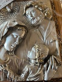 Quadro raffigurante natività in argento con cornice in legno e oro cm30 x cm36