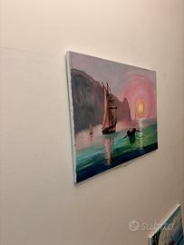 Quadro navale al tramonto dipinto a mano