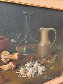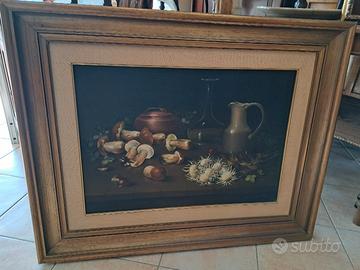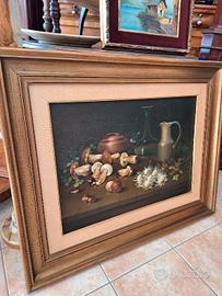 quandro raffigurante natura morta pittura a olio misura tela 70x50 misura cornice 98x80....M&P Antichità siamo un negozio specializzato in antiquariato vintage e shabby vendita al dettaglio e all ingrosso scarichi settimanali oltre 500 articoli in negozio, abbiamo una vasta scelta di como comodini tolette armadi letti vetrine vetrinette credenze servanti angoliere librerie tavoli tavolinetti sedie poltrone poltroncine divani lampade lampadari tappeti scrivanie scrittoi secretere ribaltine consolle quadri cornici specchi cassapanche bauli oggettistica varia idee regalo e molto altro ci troviamo a Roma zona Castelverde via Massa San giuliano 26b POSSIBILITÀ DI CONSEGNA E SPEDIZIONE IN TUTTA ITALIA