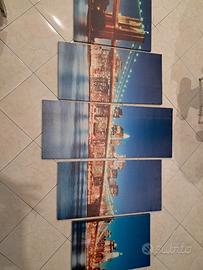 Quadro su Tela Multipannello Ponte di Brooklyn 5 Pezzi Tipo A 200x100 cm Stampa Murale Fotografia Immagini Moderni per Soggiorno Camera da Letto Cucina New York Architettura. Zona Casilina Borghesiana