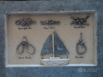 Vendo elegante quadro di nodi marinareschi in tonalità in azzurro pastello, aventi dimensioni cm. 32x22, in ottime condizioni, pari al nuovo