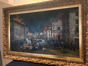 Vendo quadro olio s/tela raffigurante "la battaglia delle X giornate di Brescia", pittore bresciano Arcari Rinaldo; dim.largh. Tela ca. cm.120 H cm.70; dim. totali largh. cm.140 H cm.90; perfette condizioni - cornice di pregio