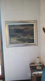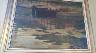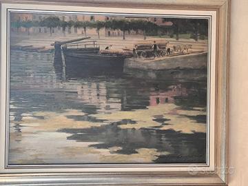 quadro olio su legno di Gianfranco Campestrini Darsena di Brivio sull'Adda 1944 Originale