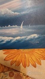 Opera di Umberto Lammanna pittore contemporaneo, nato a Eboli nel 1929 scomparso a Frosinone nel 2011. Pittore di talento naturale, si trasferi a Milano nel 1961. L'opera misura cm.50x40 il tramonto sul mare fu dipinta nel 1977 acquistato in una esposizione a Milano.