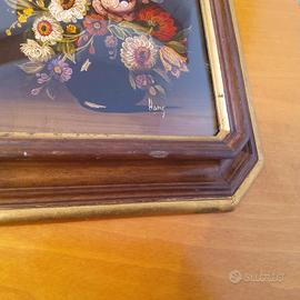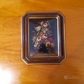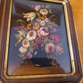 vendo quadro olio su rame natura morta primi 900 vaso con fiori firmato HANS in basso a destra cornice originale con vetro concavo per far risaltare I dettagli del dipinto sia l'utilizzo del rame che del vetro concavo confermano il periodo di attribuzione cm19x25h.con cornice.