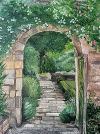 Quadro olio su tela, 30x40 cm, raffigurante un giardino. Tela di altissima qualità. Fatto a mano