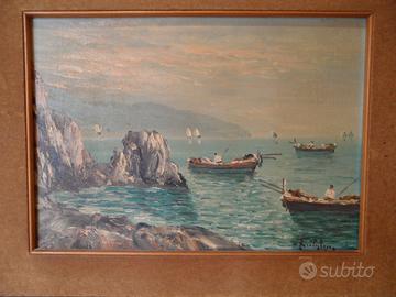 Quadro Olio su Tela ‘900 Barche e Pescatori