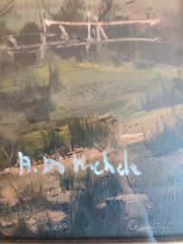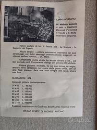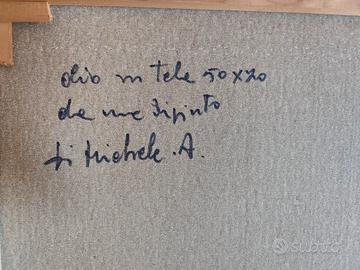 Vendo splendido dipinto originale ad olio su tela del Maestro Antonio Di Michele (nato a Castilenti nel 1953), pittore quotato e recensito da importanti testate giornalistiche come "La Stampa" e "Il Secolo XIX". L'opera rappresenta un suggestivo paesaggio rurale, caratterizzato da una pennellata materica e una splendida resa della luce. Dettagli dell'opera: Tecnica: Olio su tela Dimensioni tela: 50x70 cm (dimensioni generose, ideale per un salone o uno studio) Stato: Ottime condizioni, completo di cornice dorata. Autenticità: Il quadro è firmato fronte e retro. Sul retro è presente l’autentica autografa del pittore e una nota biografica dell'epoca con le quotazioni ufficiali del 1978 (che per questo formato erano di 400.000 lire). Un pezzo di arte italiana anni '70, perfetto per collezionisti o per chi vuole arredare con un'opera autentica e documentata. Disponibile solo ritiro a mano Lombardia e limitrofi.