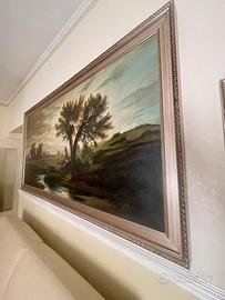 Bellissimo paesaggio olio su tela con cornice 218 x 117 cm