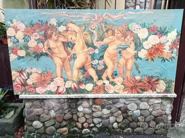 Vendo grande quadro olio su tela, dimensioni 180×90 cm, soggetto con putti/cherubini in stile rinascimentale-barocco, ricco di dettagli floreali.