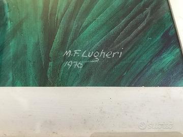 Opera dal titolo "Paesaggio con nudo" del pittore Mario Francesco Lugheri (Livorno 1906 - Livorno 1977), scuola di appartenenza ambito livornese, tecnica olio su tela, 1976, firmato e datato dall'autore in basso a destra.