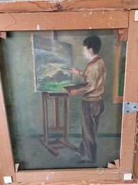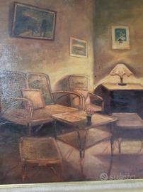 Causa trasloco vendo quadro olio su tela tra i primi lavori dell'artista napoletano Antonio D'Urso (1934 - 2015) datato 1955 e firmato, ritrae un salottino del suo appartamento, sul retro un autoritratto dell'artista. le misure sono cm. 68xcm 58. la cornice è originale del periodo. Possibile spedizione a carico del destinatario.