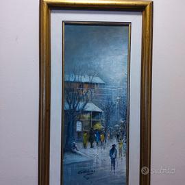 vendo quadro che raffigura una scena urbana innevata firmati dall'autore Galdini .misura cm 35x60 in perfette condizioni