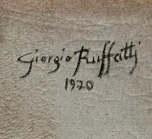 Olio su tela del pittore torinese Giorgio Ruffatti [To 1935 / Comacchio (Fe) 1990] - datato 1970 - cm 50x70, con cornice cm 74x94. Nelle foto, particolare della firma con data in basso a destra dell'opera, e posteriormente sulla tela. Posso spedire solo l'opera oppure completa di cornice. Disponibile consegna a mano in Torino o Canavese (Rivarolo, Feletto, Cuorgnè, Castellamonte....)