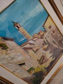 Quadro olio su tela Raffigura uno scorcio di Greccio, il paese dove San Francesco ha creato il primo presepe Autore Pino palomilli Ottime condizioni