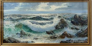 Vendo quadro dipinto a mano olio su tela 20x40 Mare di Zanelli con cornice dorata 44x66 e vetro a protezione