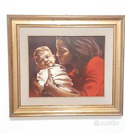 Quando olio su tela del pittore vivente Sergio Favotto. La maternità 60x70. comprensivo di cornice.