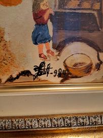 Quadro-Olio su tela " Il sacco si è rotto" datato 1980 del pittore naif Miola
