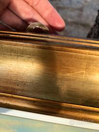 Quadro importante con cornice in legno color oro chiaro, bella e spessa.