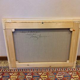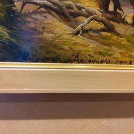 vendo quadro olio su tela del pittore MONZIO COMPAGNONI ARCANGELO paesaggio con persone titolo" lago di Braies "(Bolzano) tela cm 70x50 h con /cornice cm76x56.