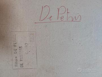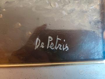 Vendo splendido dipinto a olio su tela del pittore De Petris, artista attivo nell'area di Como. L'opera raffigura un suggestivo paesaggio rurale (cascine) con una tecnica materica molto ricca e pennellate decise. Autore: De Petris (firmato in basso a destra). Dettagli: Sul retro è presente il timbro originale dello studio dell'artista ("Oil Paintings - Como - Italy"). Condizioni: Ottimo stato di conservazione, tela integra. Stile: Perfetto per arredamento classico o rustico. Disponibile solo per ritiro a mano Lombardia e limitrofi