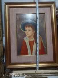 Quadro olio su tela raffigurante una bambina, cornice in foglia d'oro, euro 140. OGGETTO NUOVO, si spedisce