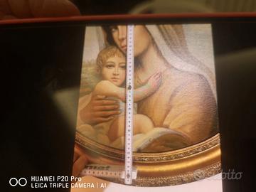 Quadro olio su tela raffigurante Madonna con Bambino, cornice ovalare, elegante, di foglia in oro, euro 140. OGGETTO NUOVO, si spedisce
