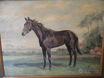 Quadro Olio su Tela Firmato Pietro Angelini datato 1970, Raffigurante un Cavallo Ritratto sul Pascolo Estivo con Cornice senza Vetro. Larghezza 96cm, Altezza 76,5cm, Profondità 3cm. Vendo