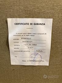 Olio su tela formato 50 × 70 cm, certificato di garanzia S.C.A. “Società Certificazione Arte” timbro “ORIGINALE”, cornice in legno dorata.