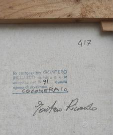 Vendo quadro olio su tela del pittore Gontero Riccardo realizzato nel 1991. Misure esterno cornice 110 cm x 80 cm Richiesta €. 130,00. Consegna e pagamento a mano a Torino e prima cintura – NO SPEDIZIONI