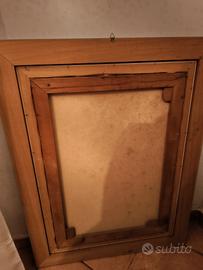L'opera è impreziosita da una cornice imponente e di alta qualità, in legno con finiture dorate e un elegante passe-partout interno in legno chiaro. La cornice da sola rappresenta un valore aggiunto notevole per l'arredo di un salotto o di uno studio.