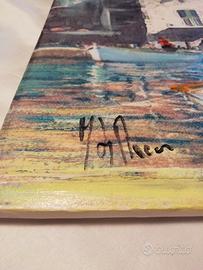 Dipinto olio su tela (villaggio di pescatori) misure 30x40