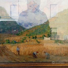 Vendo come da foto quadro paesaggio di campagna. Cornice sua originale misure 60 cm x 55 cm