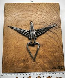 opera su tavola in legno misure e condizioni come da foto, dell'artista Amblé Sonaglia famoso per i suoi lavori con i chiodi.