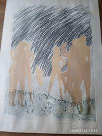 Quadro Opera multipla Artista MARIO CEROLI PURTROPPO A SUBITO INFILTRAZIONI D'ACQUA DANNEGGIANDOLO INTORNO AI LATI BIANCHI DELLA GRAFICA. MISURA 79,5 X59,5 CIRCA. LA CORNICE E LA SUA ORIGINALE.