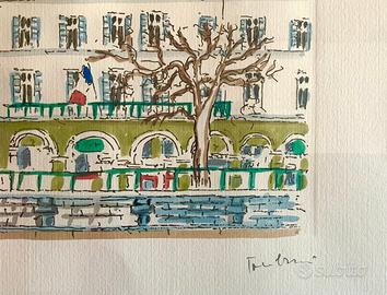 L’acquaforte è presentata in foto incorniciata e sotto vetro, ma viene venduto il solo foglio che sarà inserito con cura in un capiente tubo da disegno.
