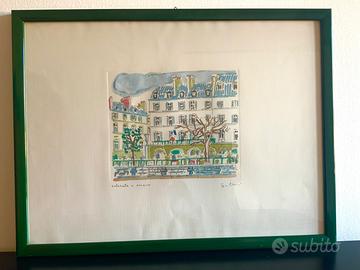 Vendo un’acquaforte intitolata “Muri di Parigi” realizzata da Orfeo Tamburi, colorata a mano e firmata a mano dall’artista.