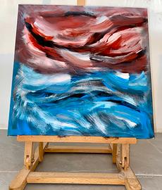 L’opera raffiugara l’incontro tra mare e cielo che si mescola in questo quadro astratto