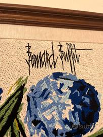 Quadro "ortensie blu" 1971 Arazzo di lana con cornice. BERNARD BUFFET