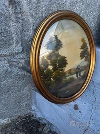 Quadro con ritratto paesaggio e cornice ovale dorata Firmato david Parte dietro con qualche segnetto