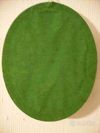 Quadro ovale cornice dorata antichizzata raffigurante un Putto che suona l'Arpa tutto di pizzo lavorato a mano. Misure della cornice altezza 29 cm. - larghezza 23 cm.