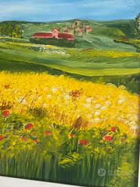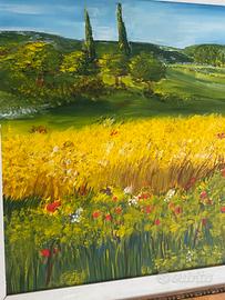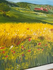 100x70 acrilico su tela, dipinto a mano, paesaggio campo si grano, vendita senza cornice.